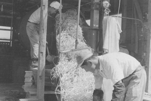 製茶機械を使い、カンナ屑を乾燥させる装置を製造